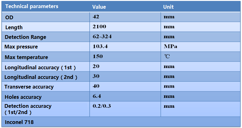 Composition (from top to bottom): Enhanced electronic module and gamma probe, longitudinal probe, transverse probe, temperature sensor。